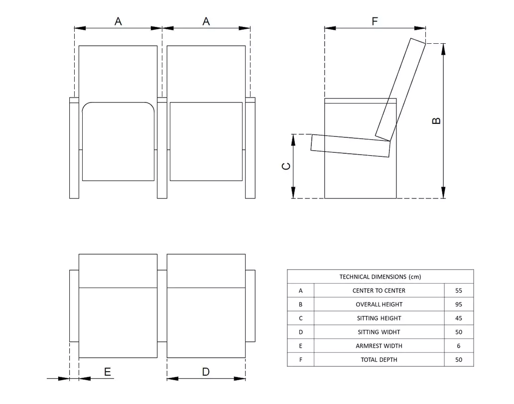 Seats come with easy installation and maintenance features, designed for hassle-free use in high-traffic auditoriums and conference centers.