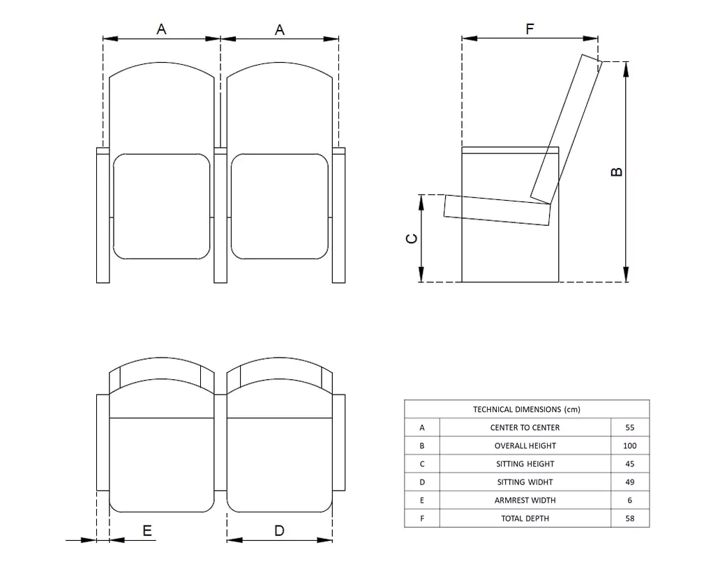 Seats come with easy installation and maintenance features, designed for hassle-free use in high-traffic auditoriums and conference centers.